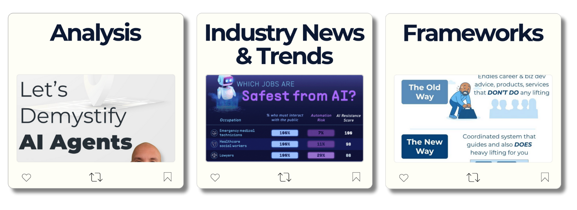 Get better, faster results with weekly calls covering evolving AI tools, tactics and techniques